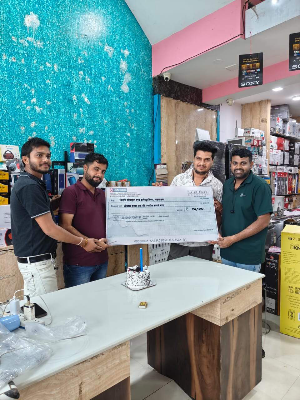 किशोर इलेक्ट्रॉनिक्स के संचालक मनोज नेभानी ने बताया की अपने ग्राहको के विश्वास और अपने शोरूम की टीम एवं बजाज फाइनेंस के एफ ओ एस सोहन निर्मलकर की वजह से ग्राहकों को सही दाम सही फाइनेंस स्कीम जैसे की 888 ‘ 999 ‘ 1999 जैसी आसन किस्तें एवं सही समय पर सर्विस देने की वजह से ये सब सम्भव हो पाया है। किशोर इलेक्ट्रॉनिक्स को इस मुकाम पर पहुंचने के लिए मै सभी ग्राहकों व अपनी टीम एवं बजाज फाइनेंस की टीम को धन्यवाद देता हूँ ।