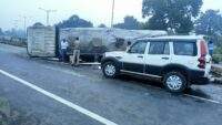 20 अक्टूबर 2024/ महासमुंद/ बीती रात लगभग तीन बजे के आसपास गुजरात से 35 हजार लीटर डीजल लेकर बेल्पहार उड़ीसा जा रही टैंकर क्रमांक GJ 06 BT 5157 एन एच 53 पर बेल्दीडीह के पास अनियंत्रित होकर डिवाइडर से टकरा गयी । हादसे मे चालक व सह चालक को मामूली चोट आई , जिसे प्राथमिक उपचार के लिए सामुदायिक स्वास्थ्य केन्द्र पिथौरा भेजा गया । हादसे के बाद टैंकर से डीजल का रिसाव होने लगा है । सूचना पर मौके पर पहुंची सांकरा पुलिस ने रिसते डीजल से कोई बड़ा हादसा न हो इसके लिए वहाँ पुलिस बल तैनात कर डीजल को ड्रम मे इकट्ठा करा रही है ।