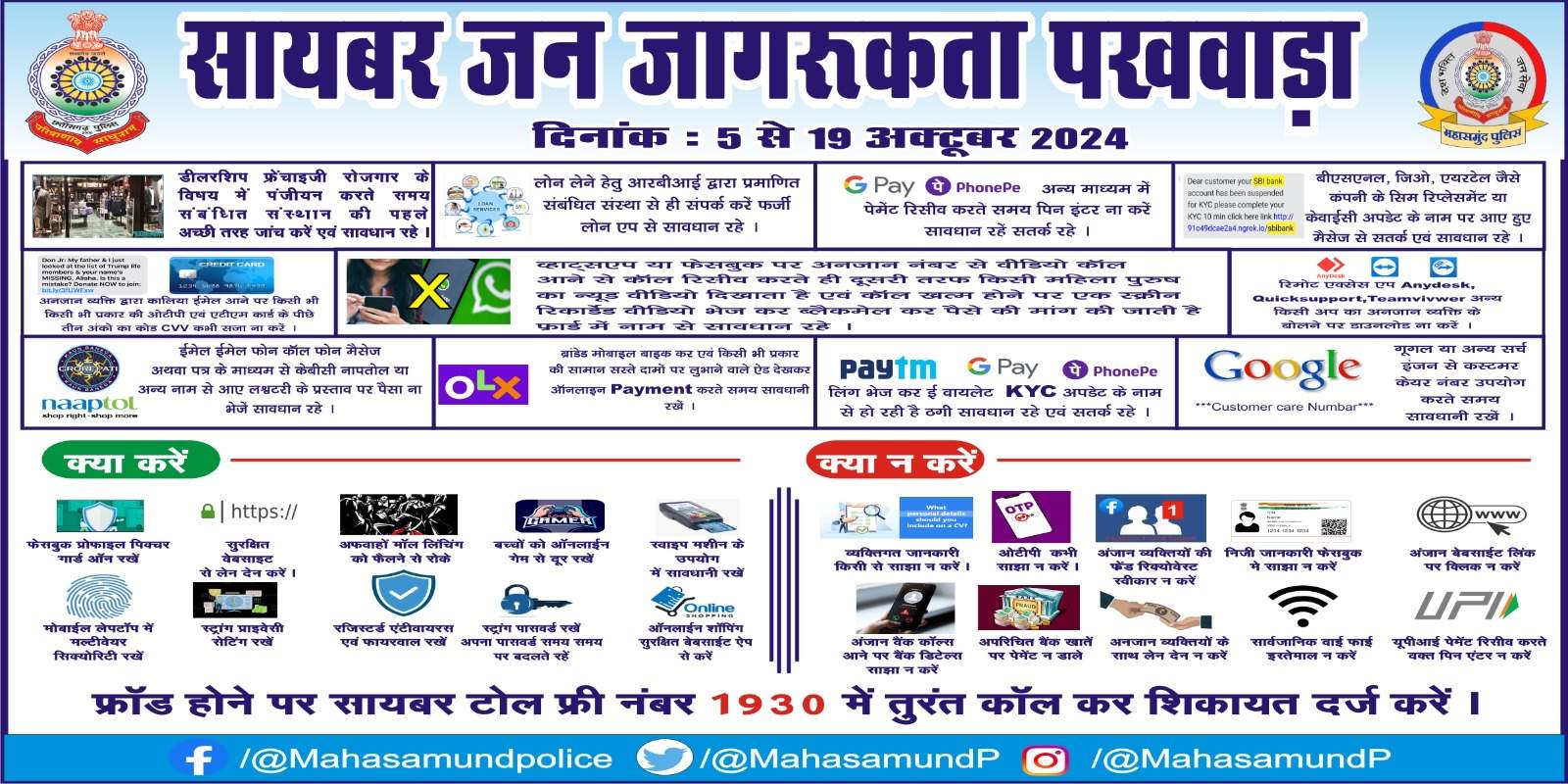 महासमुन्द पुलिस के द्वारा चलाया जा रहा है साइबर जन जागरूकता पखवाड़ा , दो दिवस मे 20,000 से अधिक लोगो को किया गया जागरूक